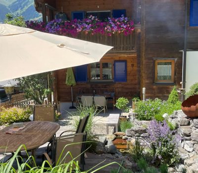 Unsere Sommergäste erwartet eine 50 qm große Terrasse ausgestattet mit Gartenmöbeln, Sonnensegel und eine Grillmöglichkeit. Gemütliche Stunden mit traumhaftem Ausblick auf die Berge der Silvretta und des Rätikons. Genießen Sie den Blick auf Valüla, Valschavieler Maderer, Zamangspitze, Geweil oder den Scheimersch. Dank einer Überdachung von 10 qm können Sie den Ausblick auch bei schlechterem Wetter genießen.