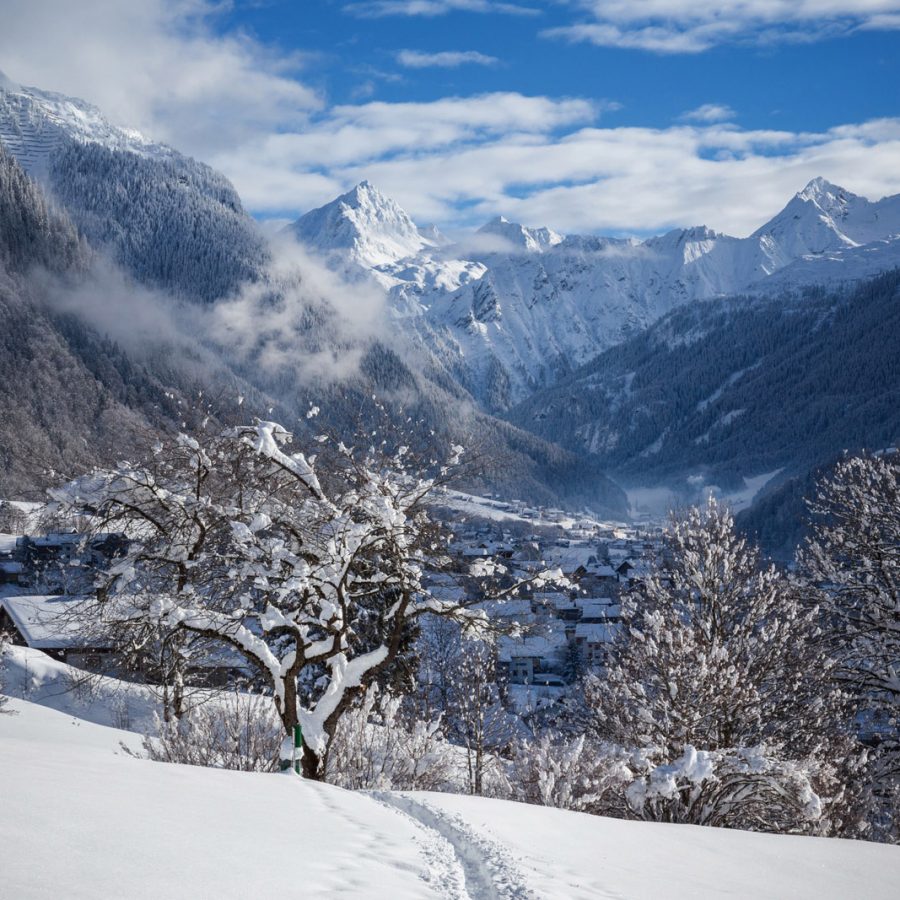 Entdecken Sie St. Gallenkirch und seine Natur. Starten Sie Ihre Wanderung direkt von der Haustüre aus. Im Winter erwartet Sie ca. 200 m vom Haus entfernt der Beginn des Winterwanderweges und genießen Sie die idyllisch verschneite Montafoner Bergwelt.